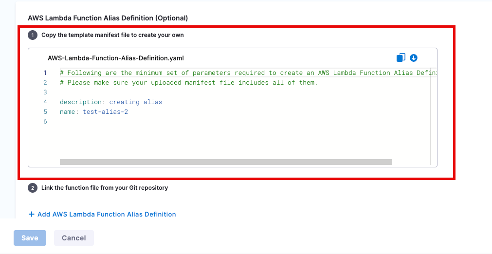Harness uses Lambda function aliases to support rollback workflows. During deployment, Harness creates or updates an alias to point to the latest function version. If a rollback is triggered, the alias is redirected to the previously deployed version—restoring the last known good state.