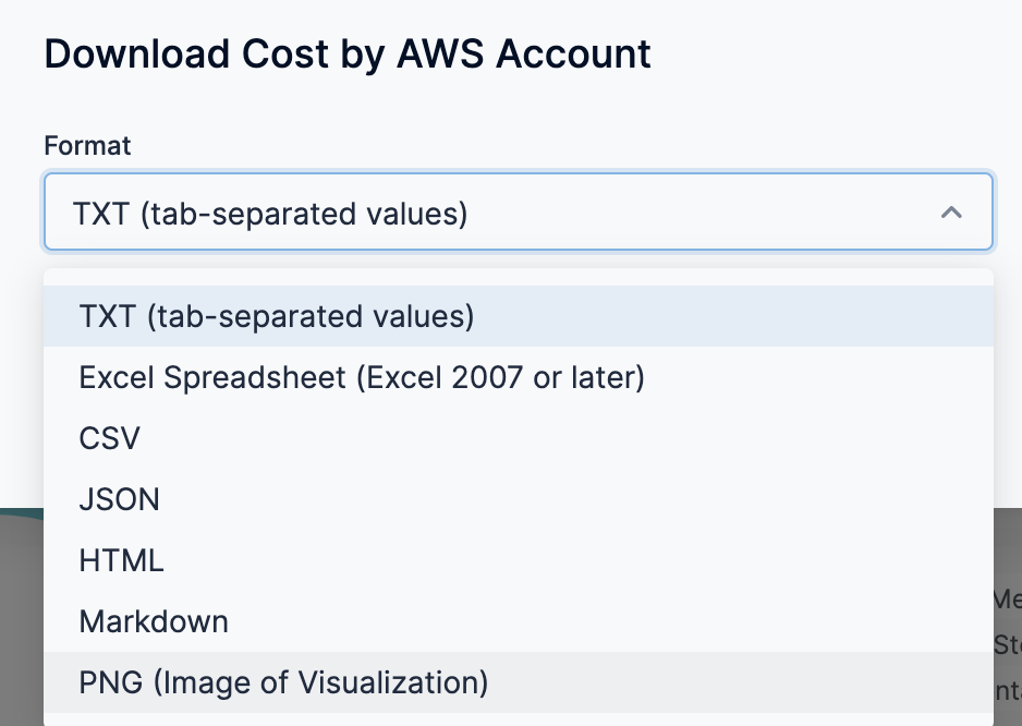 In Download AWS Cost Dashboard, in Format, select CSV from the Format drop-down menu.