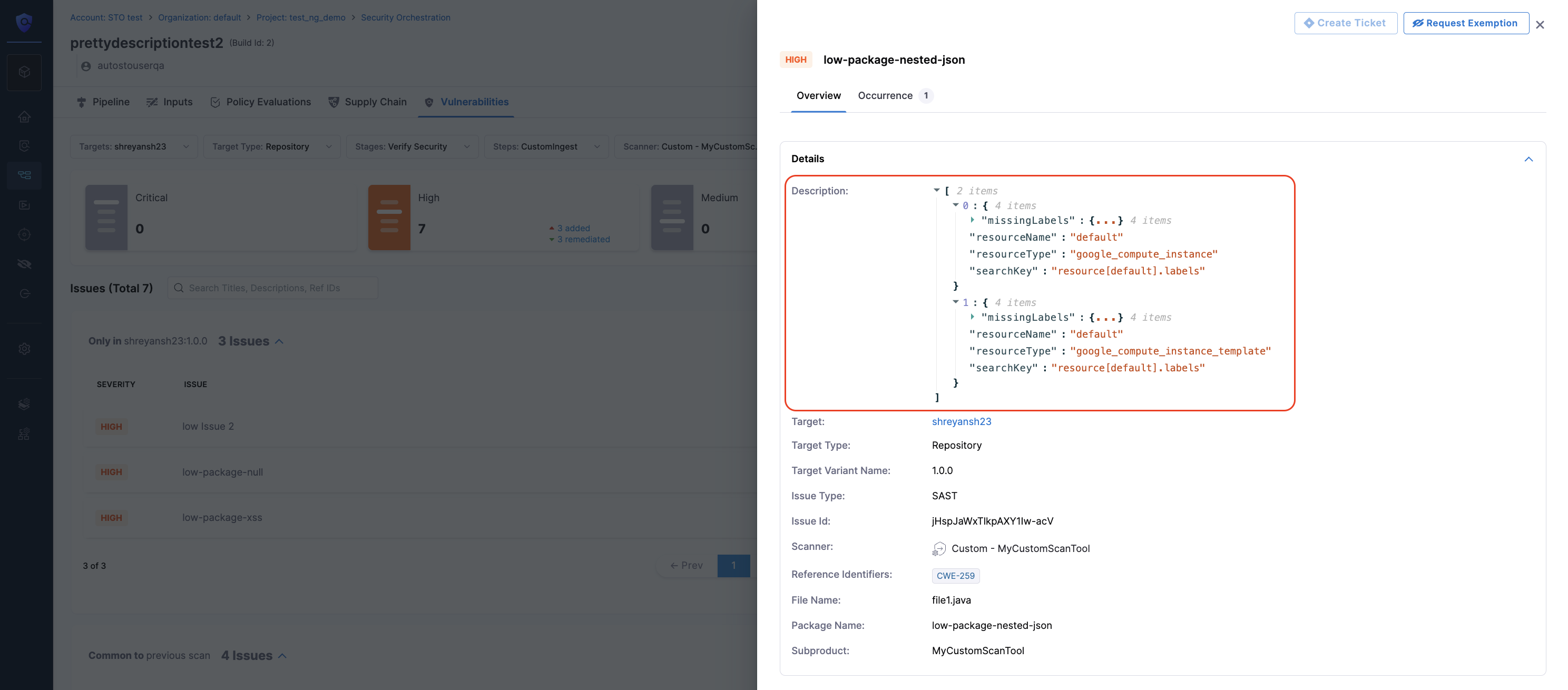 - Dedicated Security Exemptions Section: Ability to grant and manage security exemptions by SecOps owners on identified vulnerabilities or issues during security testing. Exemptions can also be made in the STO Pipeline against specific issues.